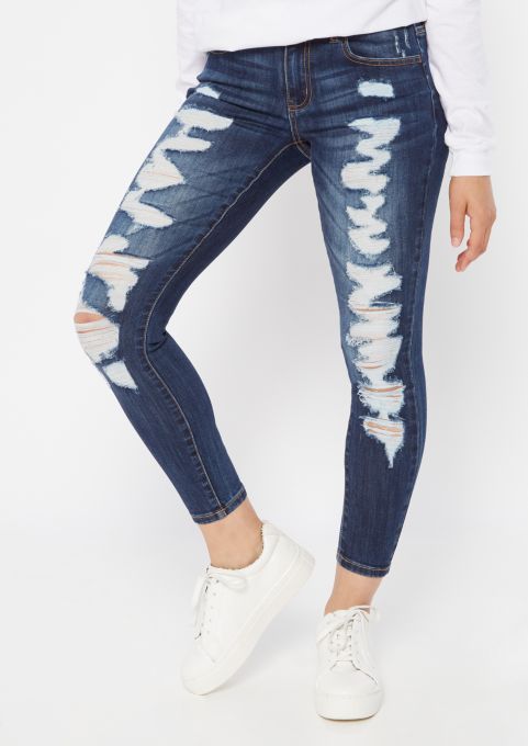 Mid Rise Medium Wash Ripped Ankle Leggings Express