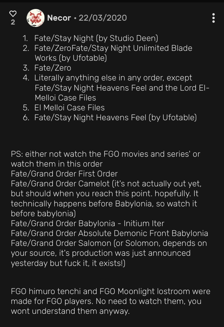 Fate Series Guide Recommended Viewing Reading Order 9gag