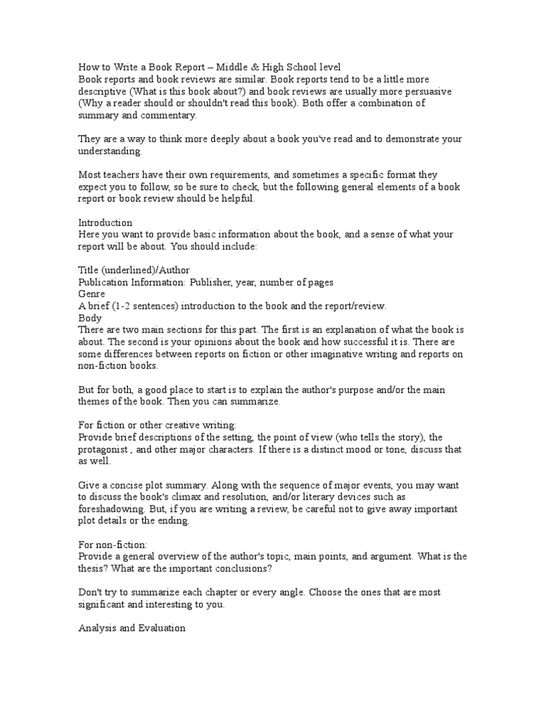How to write a book report middle school. Read a little bit each day. The first is an explanation of what the book is about. Any good book report example should contain these elements. Setting and plot of the book.