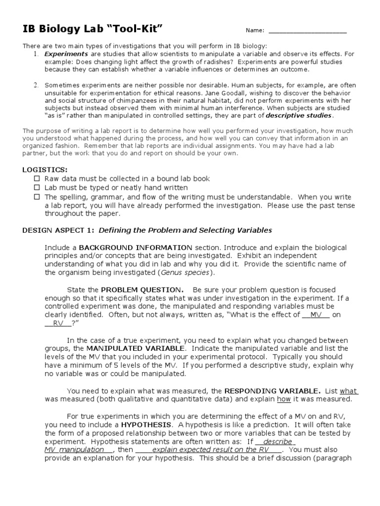 How To Write A Lab Report Biology Introduction