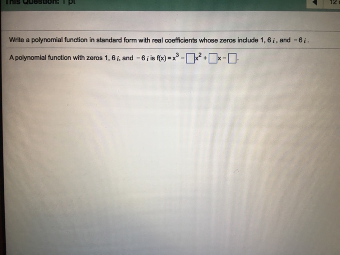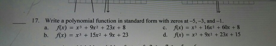 Solution Write A Polynomial Function In Standard Form With Zeros