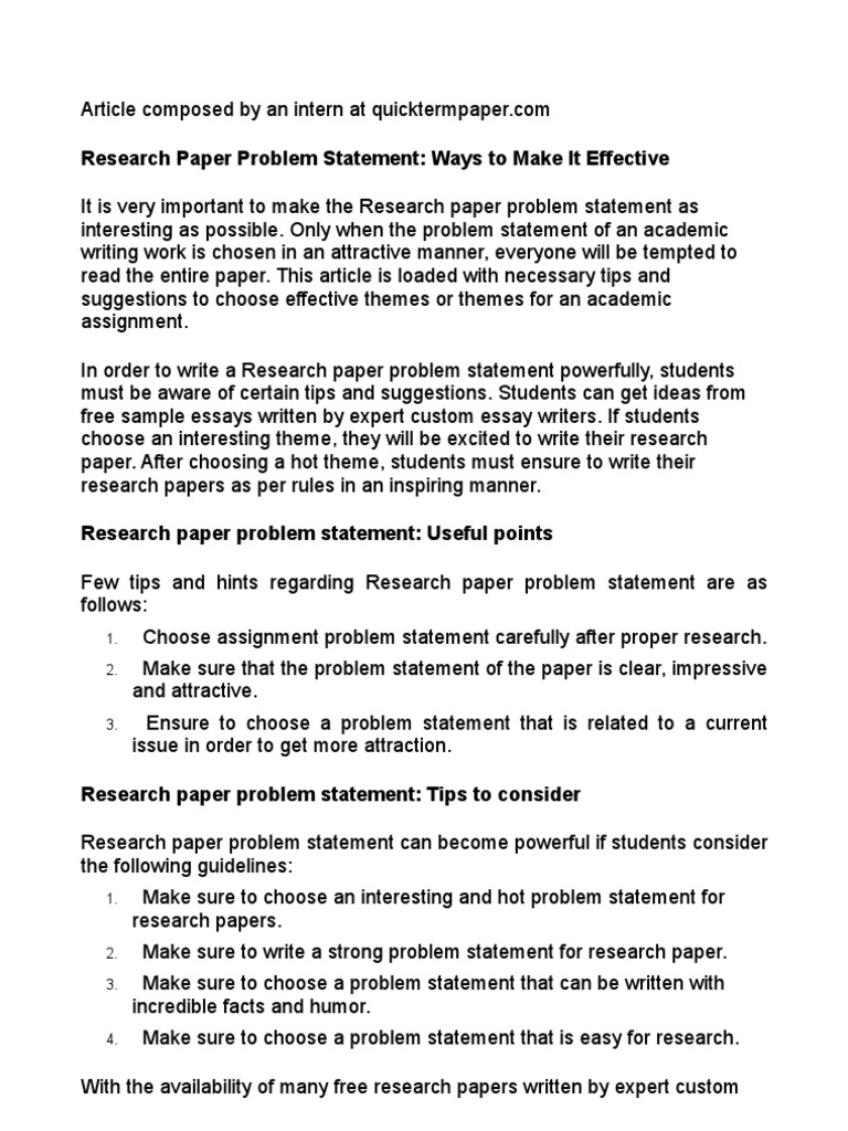 How To Write A Statement Of The Problem In Quantitative Research