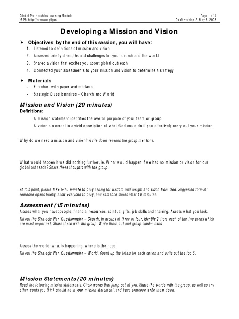 Sample Vision And Mission Statements For Churches لم يسبق له مثيل