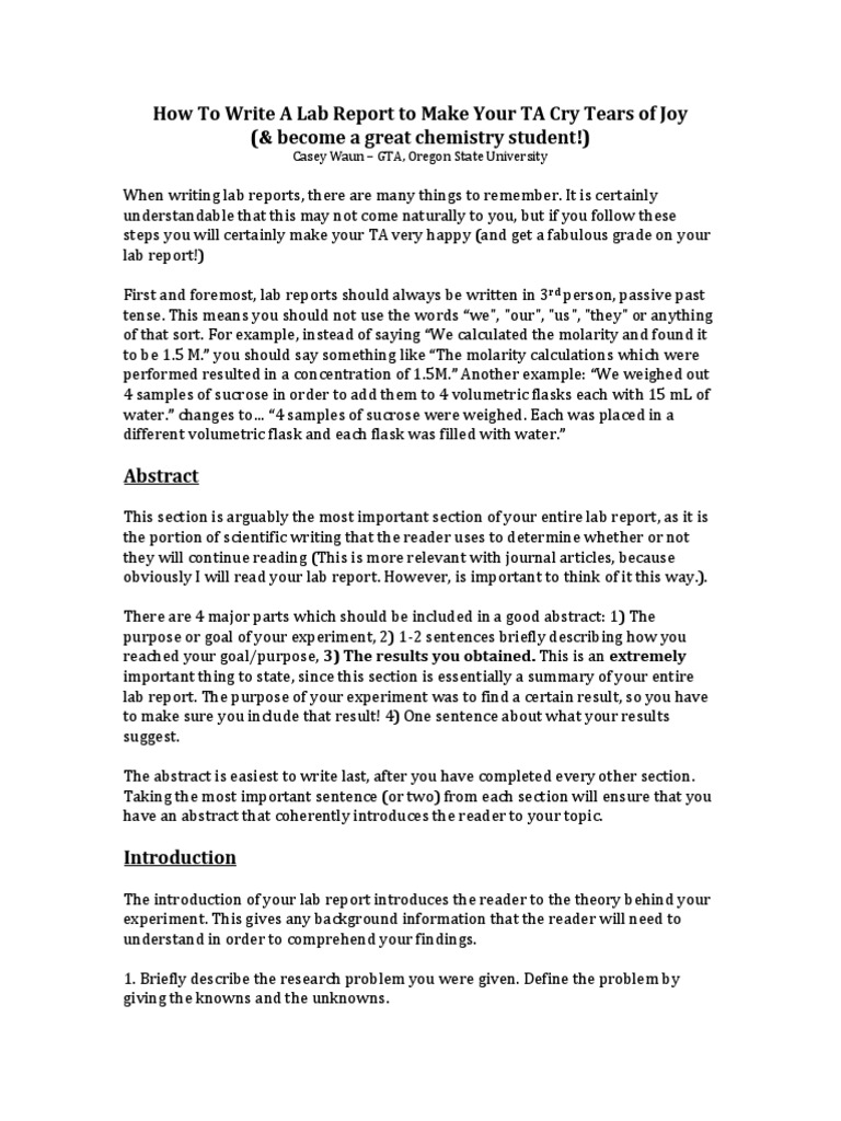 How To Write A Science Lab Report Abstract The Lab Report