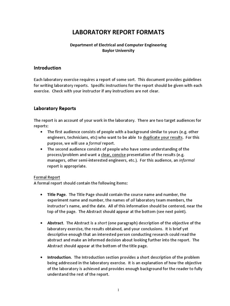 Formal Laboratory Report Format